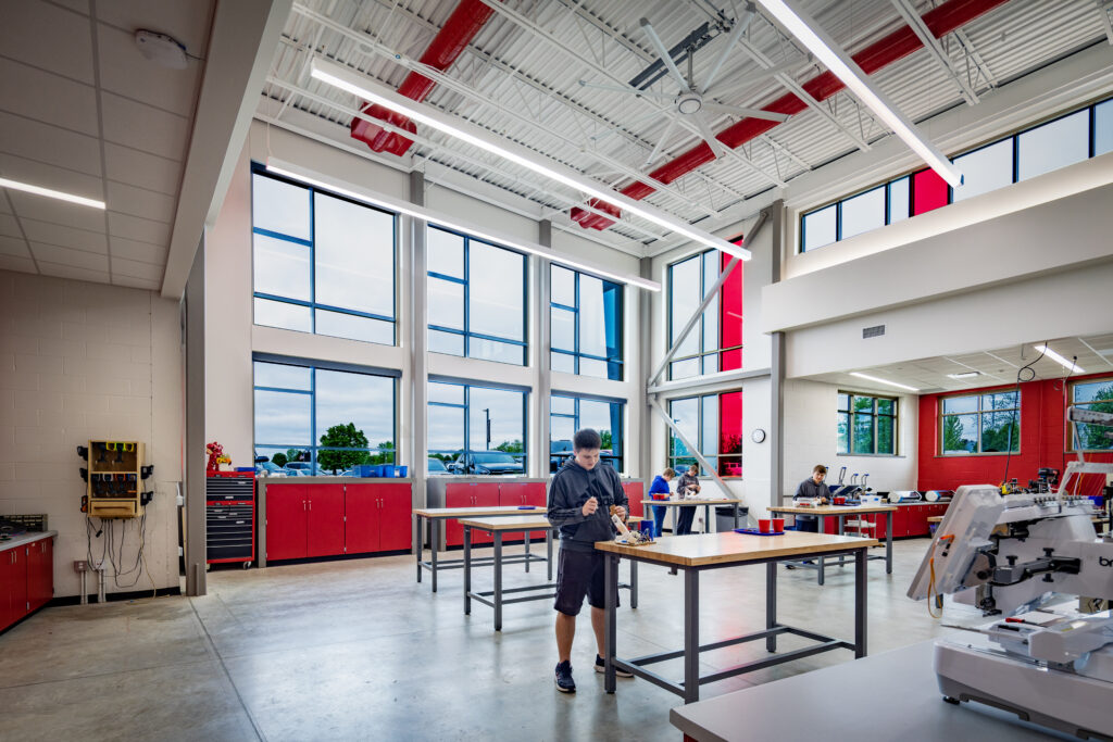 The district and our team are working together to find lasting solutions for their needs. With a need to provide more space and visibility for tech ed and STEAM programs, we are creating an addition that will include state-of-the-art shops and labs. With limited space in the current athletic areas, we’re designing a new weights + fitness center for physical education, practices, and community use as well as an indoor practice facility.